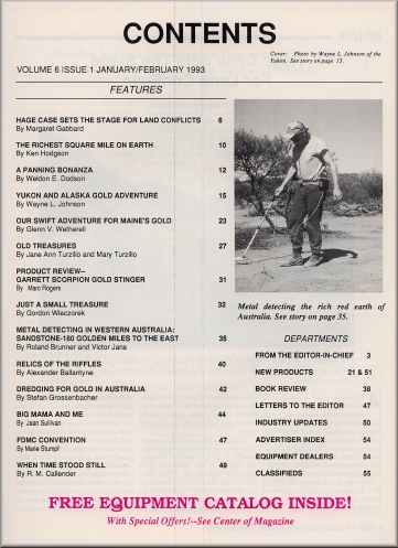 Gold and Treasure Hunter Magazine - January/February 1993 ..................... $4.95