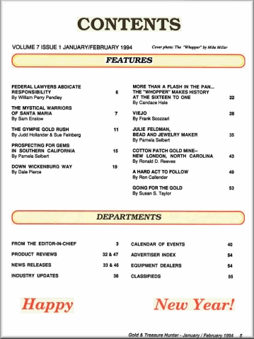Gold and Treasure Hunter Magazine - January/February 1994 ..................... $8.95