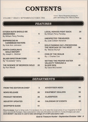 Gold and Treasure Hunter Magazine - September/October 1994 ..................... $4.95