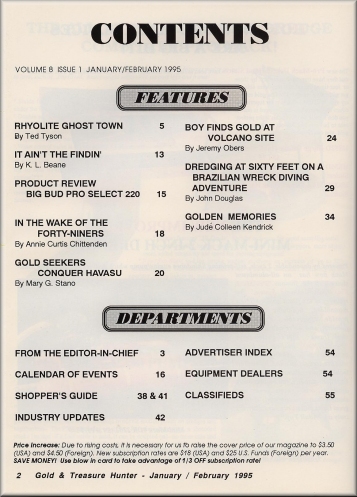 Gold and Treasure Hunter Magazine - January/February 1995 ..................... $4.95