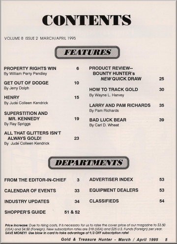 Gold and Treasure Hunter Magazine - March/April 1995 ..................... $4.95