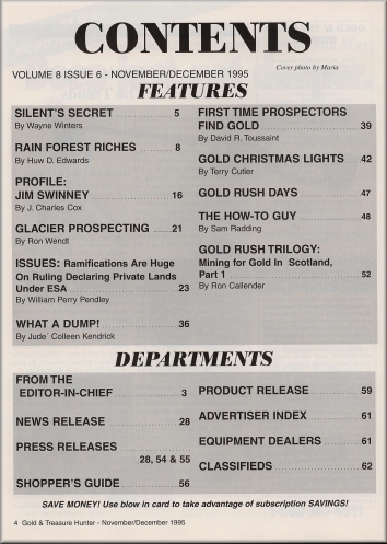 Gold and Treasure Hunter Magazine - November/December 1995 ..................... $4.95
