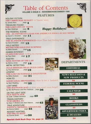 Gold and Treasure Hunter Magazine - November/December 1996 ..................... $4.95