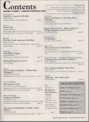 Gold and Treasure Hunter Magazine - January/February 1998 ..................... $4.95