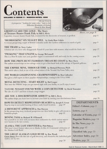 Gold and Treasure Hunter Magazine - March/April 1998 ..................... $4.95