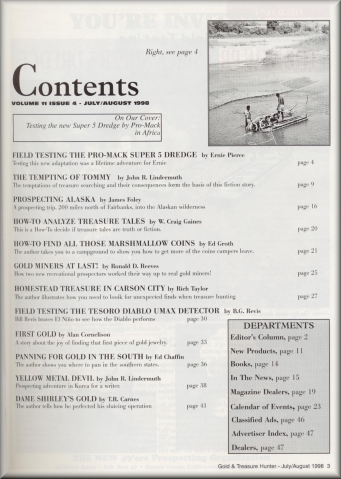 Gold and Treasure Hunter Magazine - July/August 1998 ..................... $4.95
